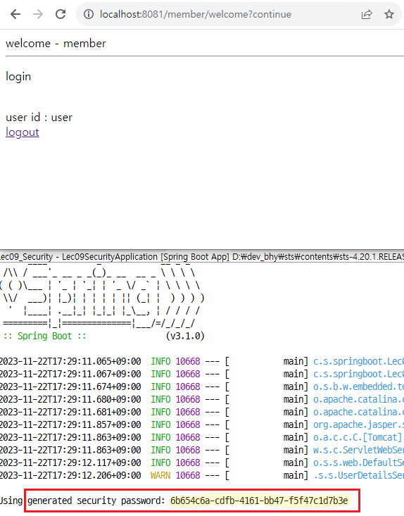 | [Spring Boot] ①Security Status Check , ②Security taglib 사용하기 (1) | 2023.11.22 |