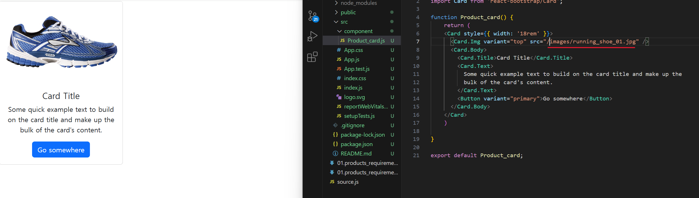 상품 카드를 만들기 위해 부트스트랩 컴포넌트를 테스트 해보는 과정에서 다운받은 사진이 보이지 않는 오류가 발생했다.